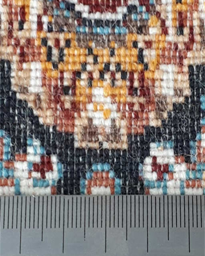 اگه به شما گفته شد این فرش تراکم 3000 است، کافیه یک خط کش داشته باشین و در جهت طول فرش تعداد گره هایی که در یک سانتی متر هستند را بشمارید، اگر 30 گره بود یعنی فرش شما واقعا تراکم 3000 است.